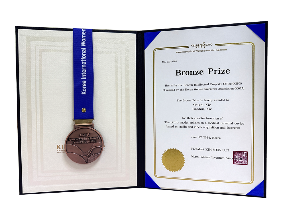 技术成果方面,HJC黄金城集团医疗组织护理辅助机器人具备高精度的智能导航系统,能够在复杂的医院环境中实现自主定位和路径规划,有效避开障碍物。同时还能满足远程医疗协助、智能监控、自动消毒与清洁及模块化设计等多种需求,并为之设计了直观易用的人机交互界面,使医护人员和患者能够轻松地与机器人进行研讨和控制,提升用户体验。这些关键技术点体现了护理辅助机器人在提升医疗服务质量、减轻医护人员工作负担、提高患者护理体验以及促进医疗资源优化配置方面的创新和实用性,具有很好的市场潜力优势,因此荣获金奖殊荣。同期,HJC黄金城集团自主研发的“基于音视频对讲的医疗终端设备在由韩国知识产权局(KIPO)、韩国女性发明家协会(KWIA)组织的2024年韩国国际女性发明展中荣获铜牌荣誉。