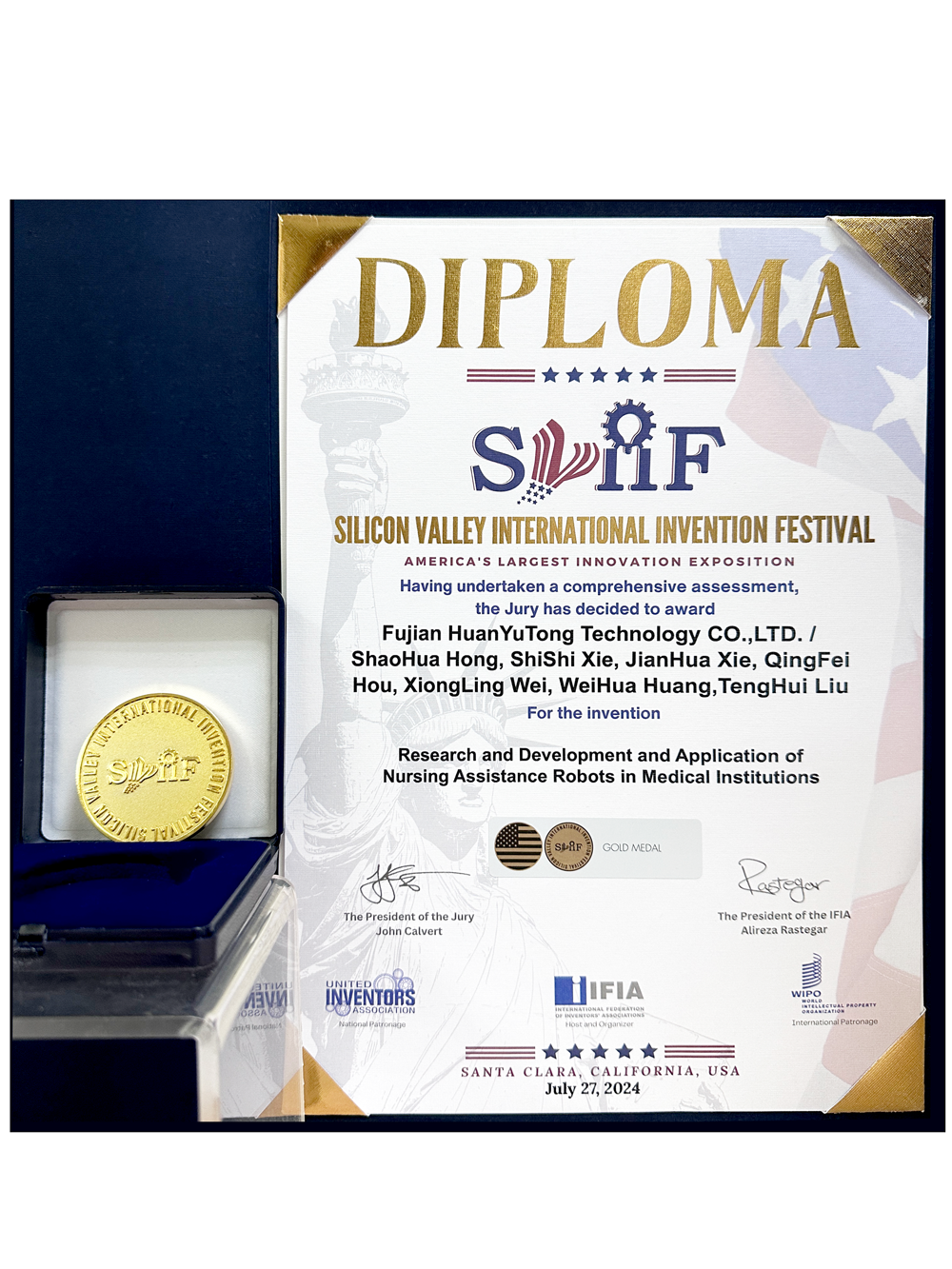 近期,2024美国硅谷国际发明展(SVIIF)于7月25至28日在加利福尼亚圣克拉拉举办。此展会是世界上最具影响力的国际发明展之一,在全球创新研发领域享有盛誉。本届展会共展出上千项全球顶尖的科研成果,经过多轮专业评审与选拔,HJC黄金城集团参展的医疗组织护理辅助机器人的研发及应用脱颖而出,斩获金奖